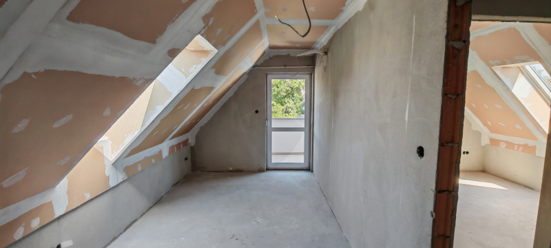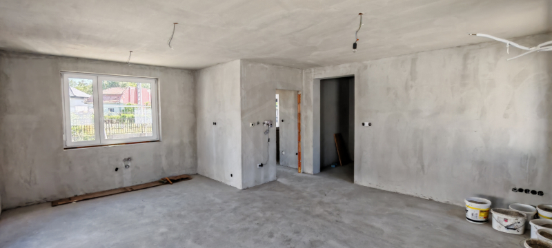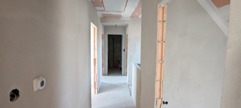 - dilatált esztrich aljzatbeton a földszinten és emeleten egyaránt (burkolat nélkül)