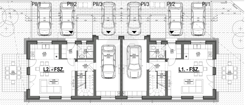 - lakóegységenként különálló közüzemi mérőórák (1-1 db villanyóra, 1-1 db gázóra, 1-1 db vízóra a használati vízhez + 1-1 db vízóra a kerti locsolóhoz)
