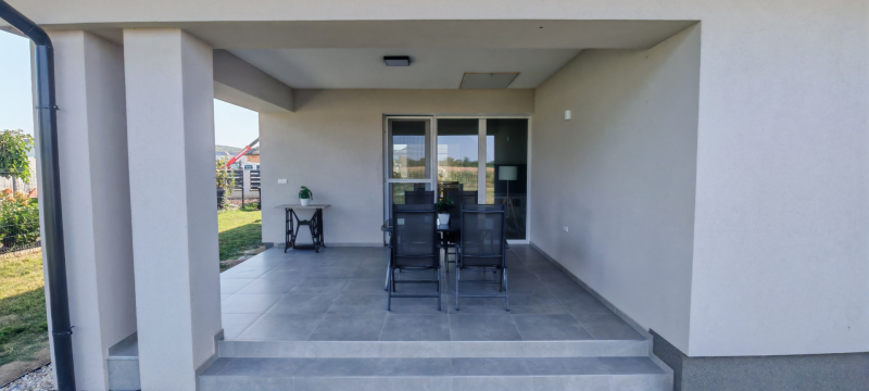 Az ingatlan 2024-ben épült 30-as Porotherm téglából 20 cm-es szigeteléssel, ami egy 725 nm-es telken helyezkedik el.