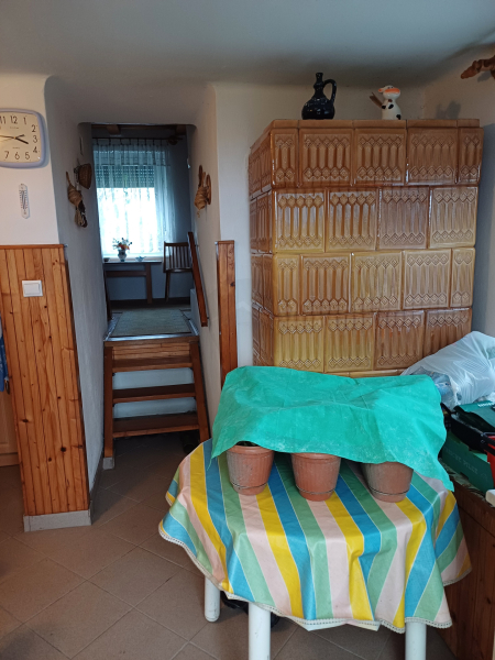 Hidegebb időkben egy cserépkályha biztosítja a meleget.