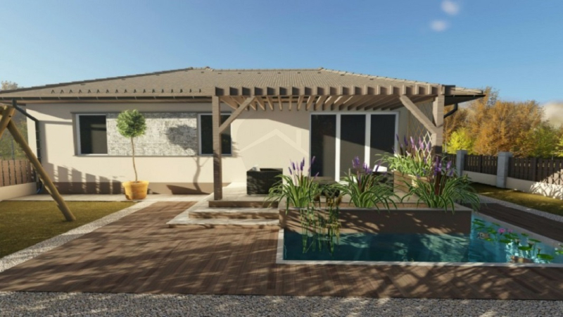 Győr szomszédságában Győrzámolyon, újonnan épülő, igényes kialakítású családi ház leköthető.