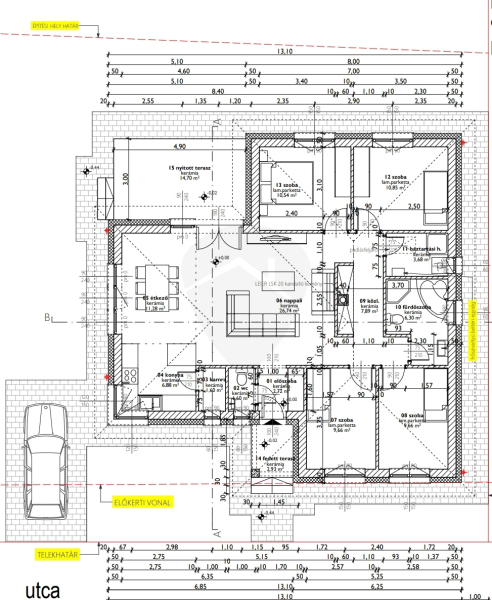 A nappali + négy szobával(vagy akár több szobával) rendelkező ingatlan alapterülete nettó 110 m2, mely igény szerint módosítható.